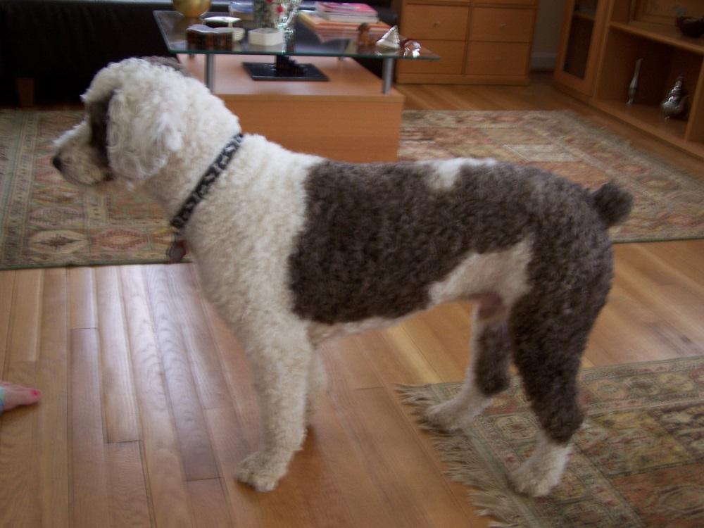 Si se esquila al perro conviene realizarlo en mayo y octubre, coincidiendo con el esquilado de las ovejas. Si el perro de aguas debe presentarse a un concurso canino su pelo deberá estar cortado siguiendo unas normas establecidas: no deberá superar los 15 cm de largo, ni ser inferior a 2 cm.
