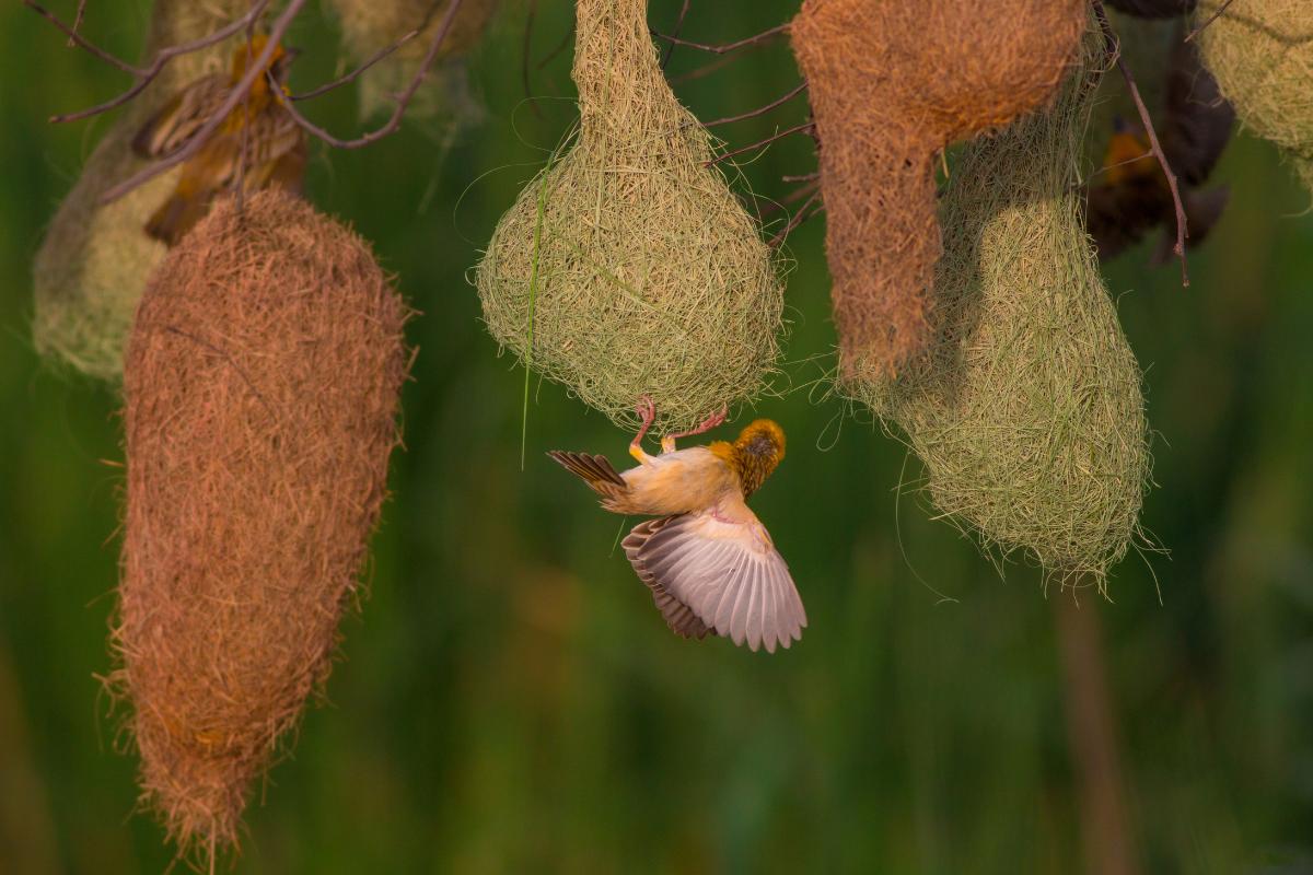 El tejedor de baya (Ploceus philippinus) construye los nidos más elaborados y complejos del mundo animal. Estas aves, nativas de Asia y el Pacífico, son conocidas por su habilidad para crear nidos realmente extraordinarios. Sus nidos son verdaderas obras de arquitectura aviar.