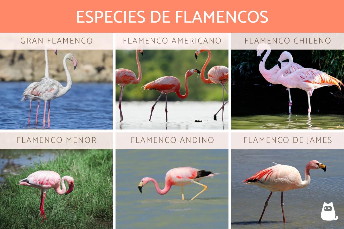 Aunque de manera general hay rasgos similares, hay distintos tipos de flamencos, cada uno con sus particularidades. Las especies de flamencos están agrupadas en la familia Phoenicopteridae, dentro de la cual se reconocen tres géneros: Phoenicopterus, Phoeniconaias y Phoenicoparrus. En total, hay seis especies, que son: