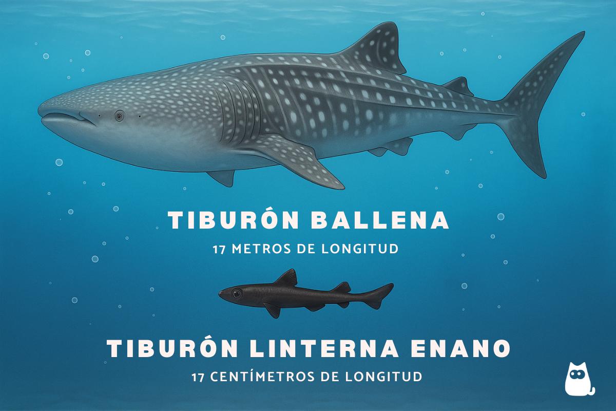 El mundo de los tiburones es tan diverso que sorprende pensar en sus diferencias de tamaño. En un extremo está el diminuto tiburón linterna enano (Etmopterus perryi), habitante de aguas profundas que apenas alcanza los 17 cm de longitud, más pequeño que una regla escolar. En el otro se encuentra el majestuoso tiburón ballena (Rhincodon typus), considerado el pez más grande del planeta, capaz de llegar a unos 12 m. Entre estos dos extremos existe una gran variedad de especies, lo que refleja la increíble capacidad de adaptación de estos animales a distintos ambientes marinos.
