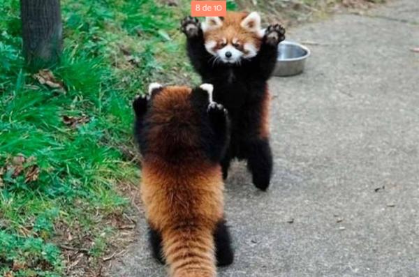 Los pandas menores son animalitos tímidos y huidizos, que cuando se sienten amenazados y sin escapatoria se adoptan una postura bípeda en un intento de parecer más grandes e intimidantes. Se trata de un comportamiento estudiado por los etólogos, aunque cuando nosotros lo vemos en realidad nos despierta ternura.