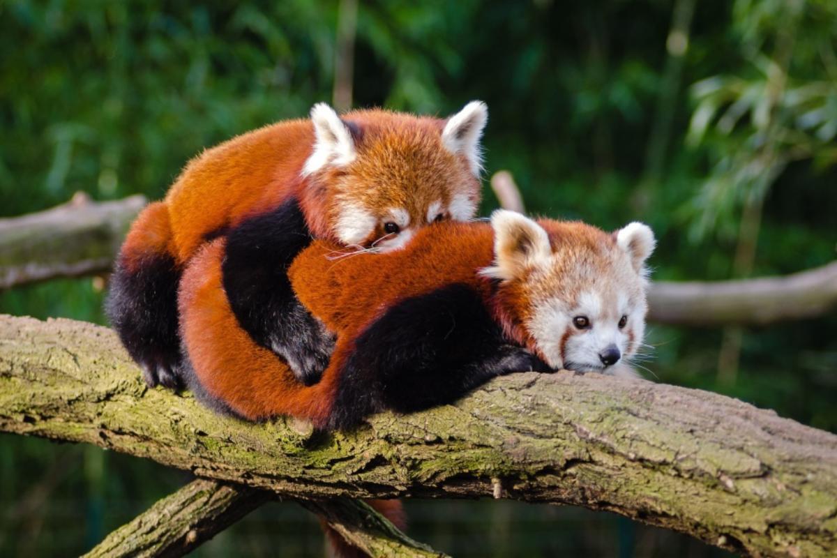 En el caso del panda rojo, su mayor amenaza no son los problemas para llevar a cabo la reproducción sino la destrucción de sus hábitat naturales. También achacan los efectos de la cacería furtiva. Habitan de manera natural en los bosques de bambú de las zonas del Tíbet, Bután, las provincias chinas de Sichuan y Yunnan y el noroeste de la India.