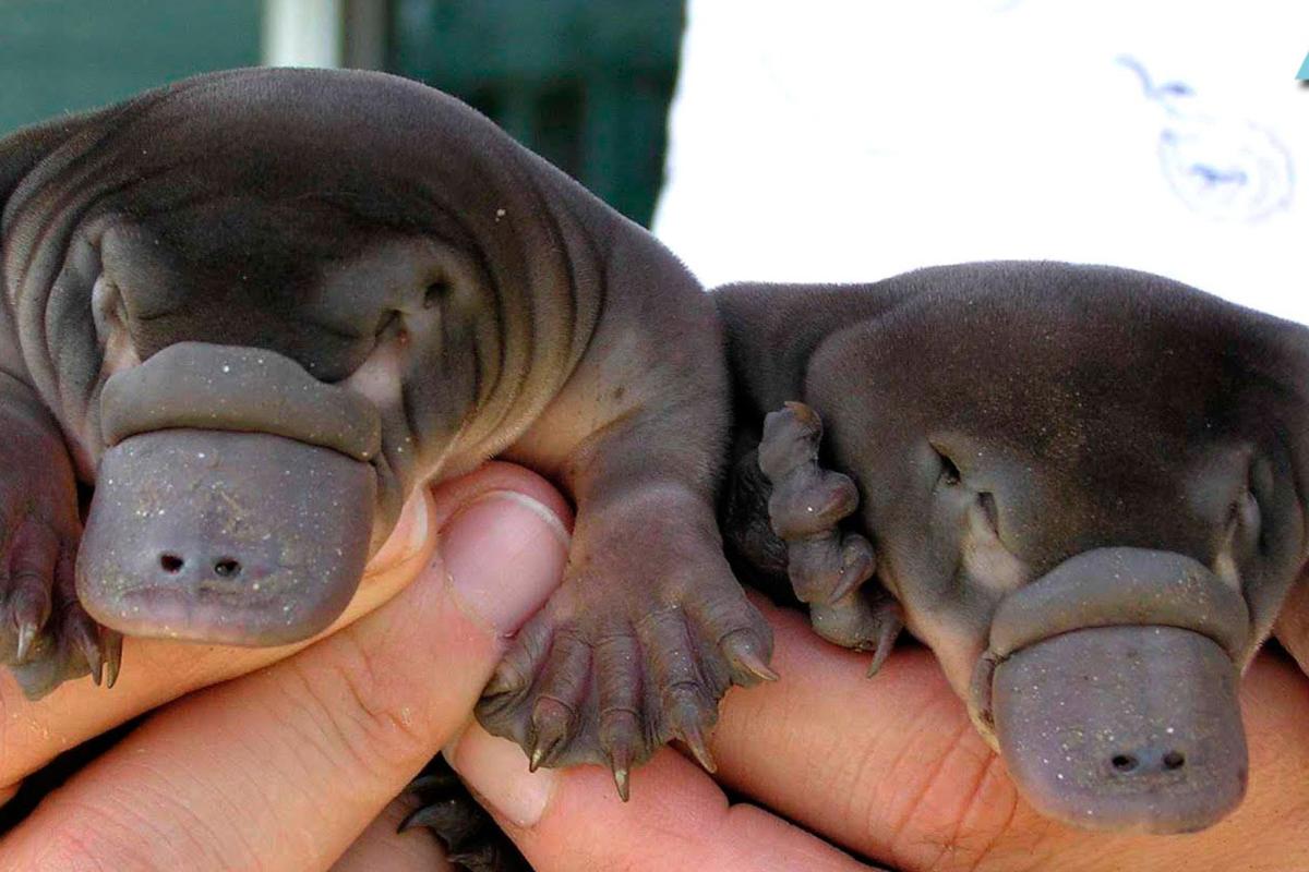 Cuando los pequeños ornitorrincos nacen son muy vulnerables. No tienen pelo y son ciegos. Nacen con dientes, que perderán al poco tiempo, quedando unas placas corneas.
