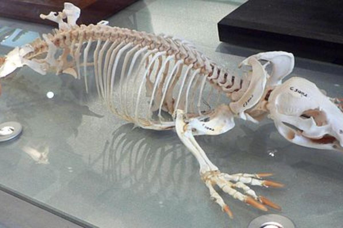 En tierra andan de forma similar a un reptil. De esta forma, y como curiosidad sobre el ornitorrinco, vemos que tienen las patas situadas a los lados y no en la parte baja como sucede con otros mamíferos. El esqueleto del ornitorrinco es bastante primitivo, con extremidades cortas, parecidas a las de una nutria.