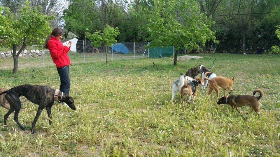 Disponen de un amplio terreno de más de 4000m2, vallado, donde los perros pueden estimularse y jugar libremente cuando deseen. Dedicamos tiempo a estar con ellos, jugar y realizar actividades de estimulación mental. En verano además aprovechan el calor para realizar juegos acuáticos en la piscina con los más valientes.