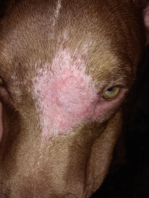 Mi perro le esta cosa en su frente no se si es sarna o dermatitis pero e tratado de darle mucho medicamentos y no se le qita sera q me pueden ayudar grasias