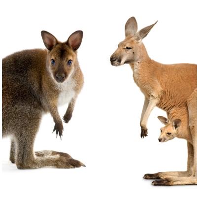 Tanto el ualabí como el canguro pertenecen a la familia de los macropodidos: tienen unos pies sobre-dimensionados que le permiten saltar, su única forma de desplazarse. Ya que viven en el mismo continente y que pertenecen a la misma infraclase de marsupiales y a la misma familia de los macropodidos se parecen mucho, pero aun así existen diferencias importantes entre ellos.