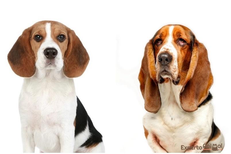 Ambas razas tienen las orejas grandes y caídas, pero, mientras las de los beagle son más bien finas y de aspecto cuadrado, las orejas de los basset hound son mucho más alargadas, que pueden colgar hasta llegar a la zona donde empiezan las extremidades del del animal.