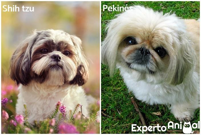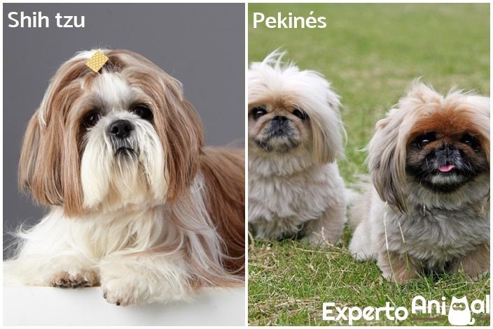 Aunque ambos son perros pequeños, el pequinés es ligeramente más pequeño, ya que posee una altura que puede ir desde los 15 hasta los 23 cm. y un peso que oscila entre los 5 y 6 kg. En cambio, el shih tzu tiene una altura de entre 20 y 28 cm. y un peso que oscila entre los 4 y 7 kg.