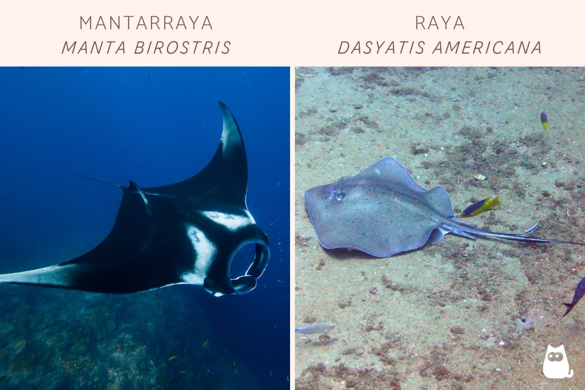 Por el contrario, las mantarrayas tienen colas más cortas y carecen de aguijones venenosos. Si bien algunas especies poseen aguijones, no los utilizan como mecanismo activo de defensa. Las mantarrayas dependen más de su tamaño y velocidad para escapar de los depredadores, aunque en realidad tienen pocos enemigos naturales debido a su gran tamaño. En este otro post hablamos de su peligrosidad: "¿Las mantarrayas son peligrosas?".