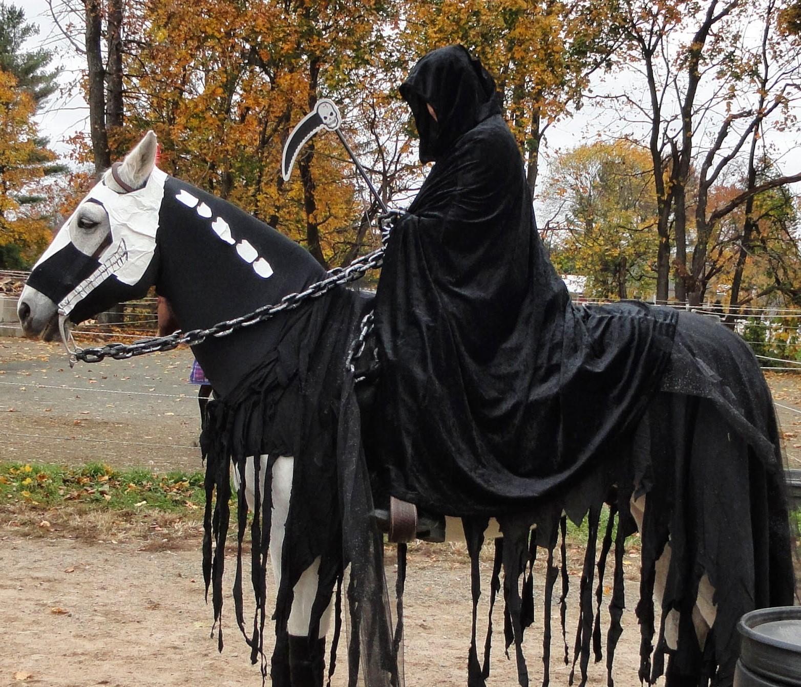 Sin duda alguna, este disfraz para caballos y jinetes de Halloween causa pavor y un poco de mal rollo si no te lo esperas. Eso sí, recuerda buscar una guadaña que no parezca de juguete, una pena.