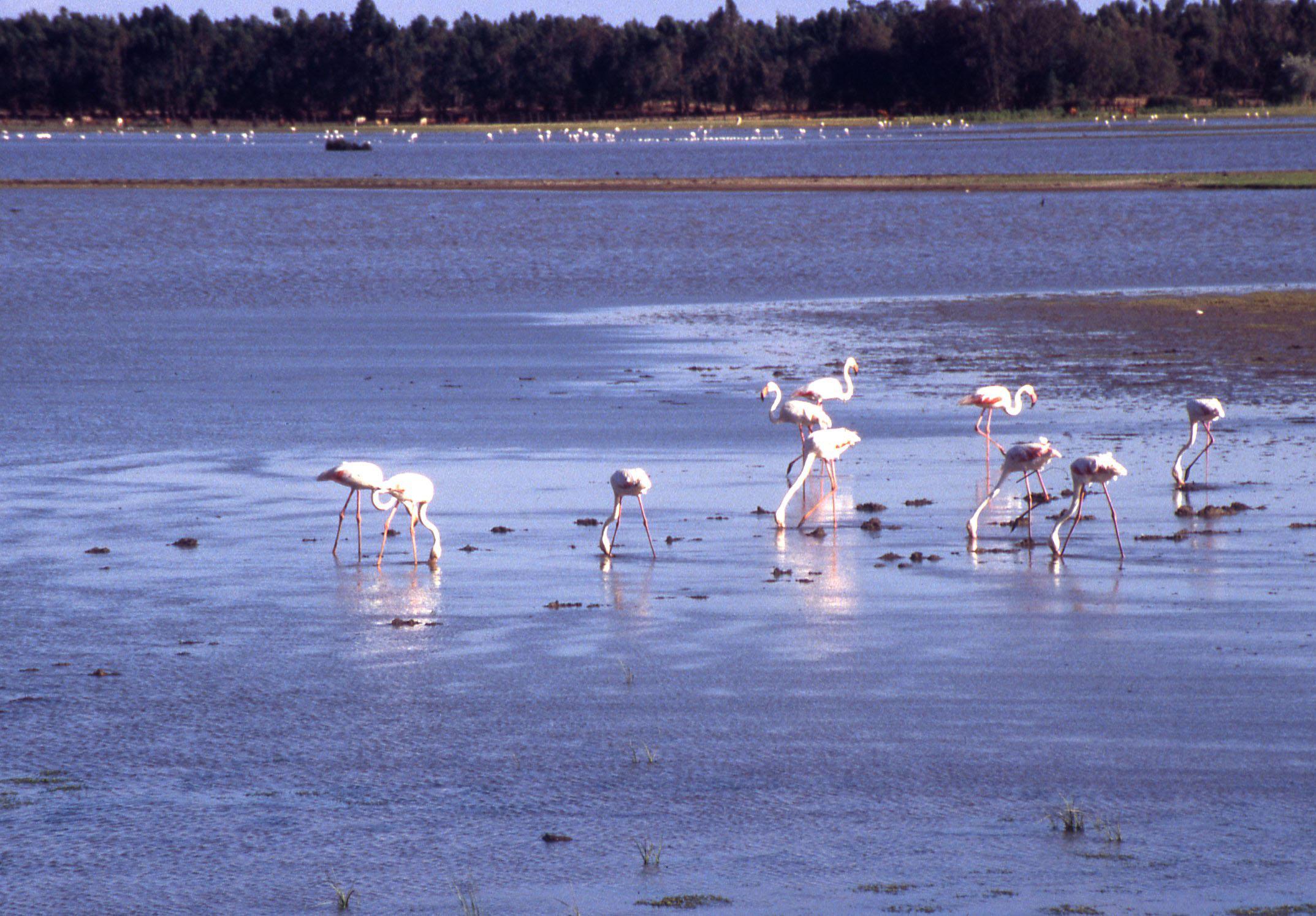Muchas otras aves migratorias se acercan a esta laguna para hacer sus nidos. Poblaciones de flamencos se instalan allí a pasar el invierno, aunque no son tan numerosos como en otras zonas. Debido a la riqueza de su tierra y sus aguas, estos espacios se encuentran incluidos en diversos programas destinados a su conservación.