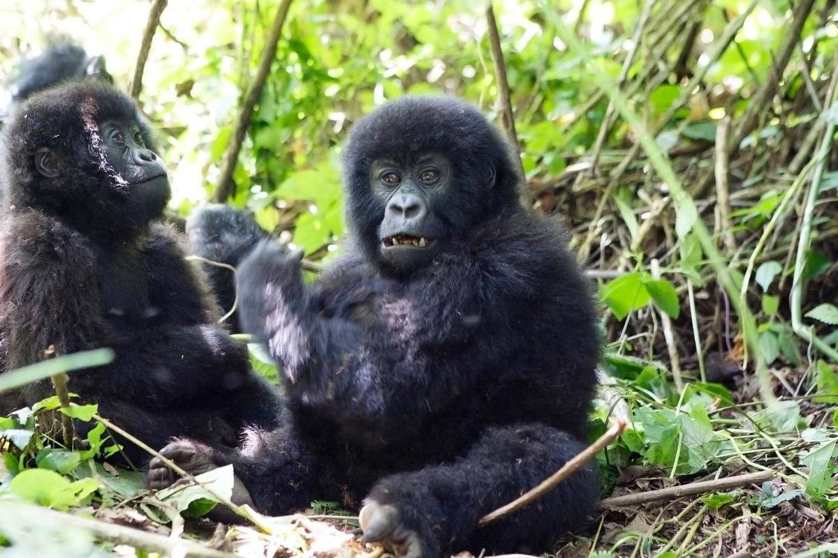 - El gorila de montaña: se restringe a zonas superiores entre los 1.400 y 1.800 m de altura, debido a que huyen se los espacios habitados por humanos. El hábitat está formado por vegetación de tipo afromontana, bosques de bambú, también bosques mixtos y los pastizales subalpinos volcánicos. Sus áreas son más bajas, pero con pendientes muy inclinadas con abundantes sotobosques de alta densidad.