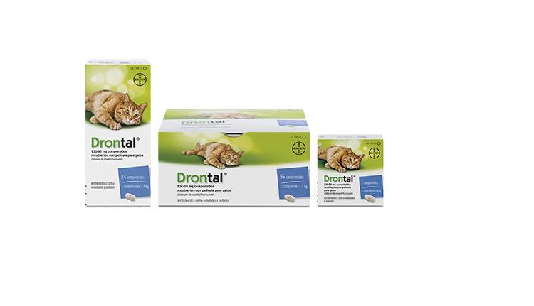 Drontal se presenta en comprimidos fraccionables para gatos de entre 2,1 y 4 kg de peso. Para gatos de entre 1 y 2 kg se administrará media pastilla. Los gatos de 4,1 a 6 kg recibirán un comprimido y medio y los de 6,1 a 8 kg tendrán que tomar dos de estos comprimidos. Drontal puede darse directamente, si el gato admite bien la administración de pastillas, o mezclarse con comida.