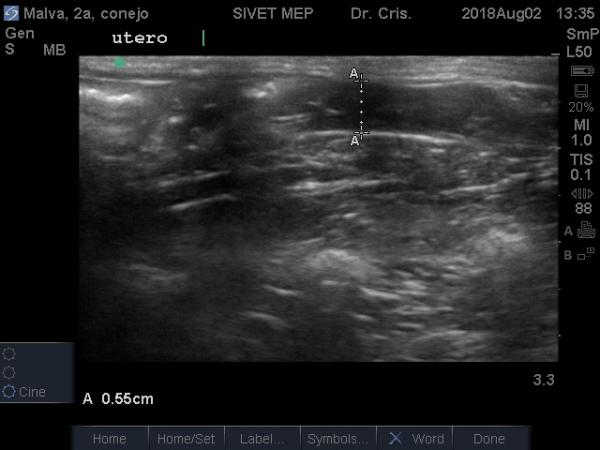 - La primera ecografía: Se realiza a los 21 o 25 días de realizarse la monta, y cuanto más esperemos más exacto será el resultado. Se recomienda que la paciente acuda con la vejiga llena.