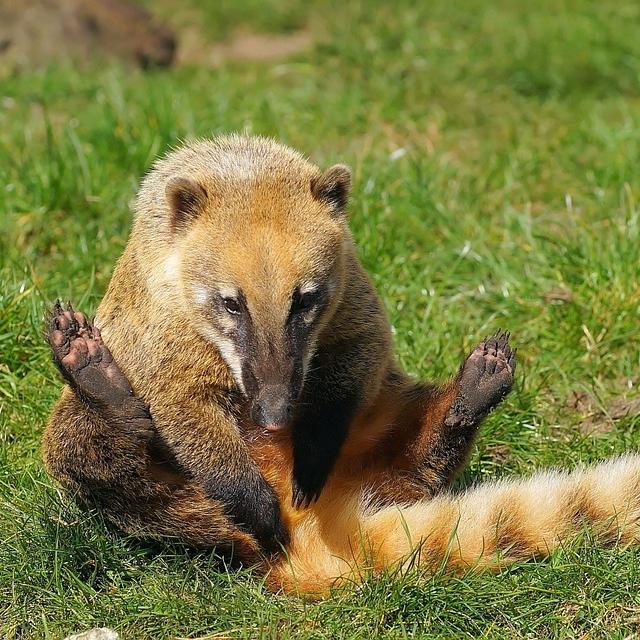 Como el coatí es básicamente diurno, es muy probable que lo veamos en alguna ocasión rondando por nuestro jardín. Aprovechemos la ocasión para lanzarle alguna golosina que lo atraiga y haga que paulatinamente confíe en nosotros.