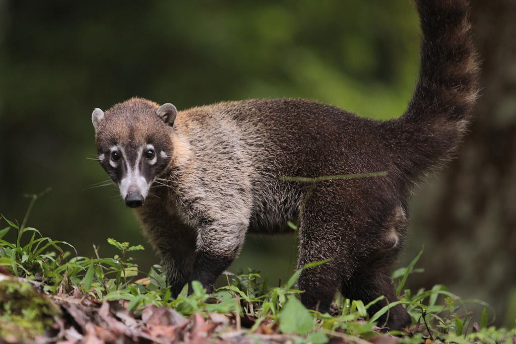 El coatí de nariz blanca, Nasua narica, se distribuye desde el estado norteamericano de Arizona hasta Ecuador, poblando Centroamérica. Es un animal omnívoro que se alimenta de roedores y pequeños vertebrados, no desdeñando la carroña, la fruta, pájaros, bayas, huevos e insectos.