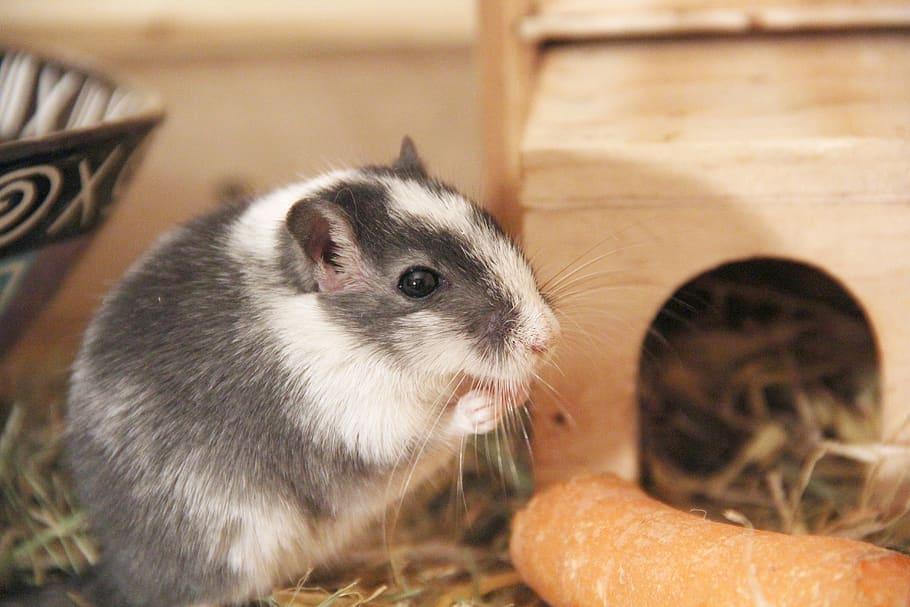 No obstante, para asegurarnos que le proporcionamos una dieta completa y equilibrada en nutrientes, lo mejor es darle un pienso específico para este roedor, y ofrecerle también un poco de heno, que le dará un aporte extra de fibra. Podemos, a su vez, dejarle alimentos naturales como frutos o vegetales esparcidos por la jaula, como manzana, brócoli, zanahoria… Siempre en pequeñas cantidades, contrariamente podría tener diarreas.