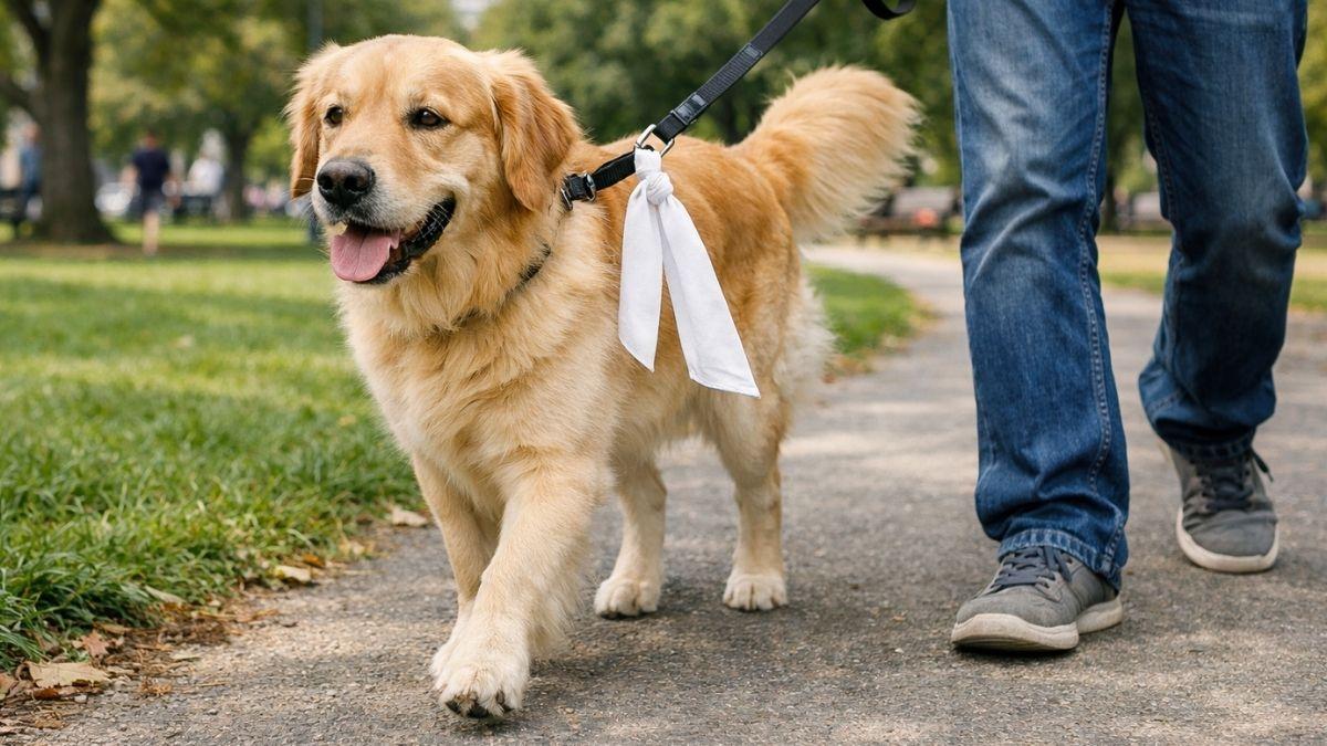 El verdadero significado del lazo amarillo en la correa de un perro