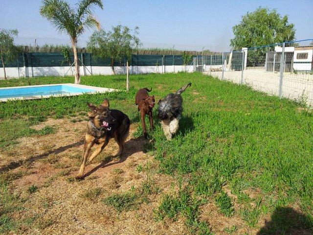 - Hospedaje: disponen habitaciones individiuales para cada perro, con zona interior y exterior. La zona interior está aclimatada y en la zona exterior disponen un patio de cinco metros cuadrados. Durante las horas de sol se encuentran al aire libre, en distintos parques, y tienen a su disposición todos los juguetes que considere el propietario. Se limpian cada día, es válido en caso de hembras en celo y disponen de un servicio veterinario las 24 horas del día.