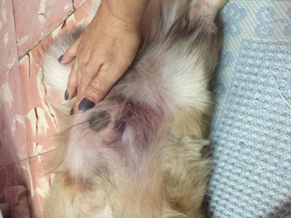 Vivo en cuba mi perro fue diagnosticado con la enfermedad de la garrapata lo vi muy mal pero a rebasado con un tratamiento algo hoy hace 4 días del comienzo de tratamiento pero hoy amaneció así como mando en la foto y le noto el vientre inflamado yo lo veía mejor pero esto me asusta como puedo ayudarlo