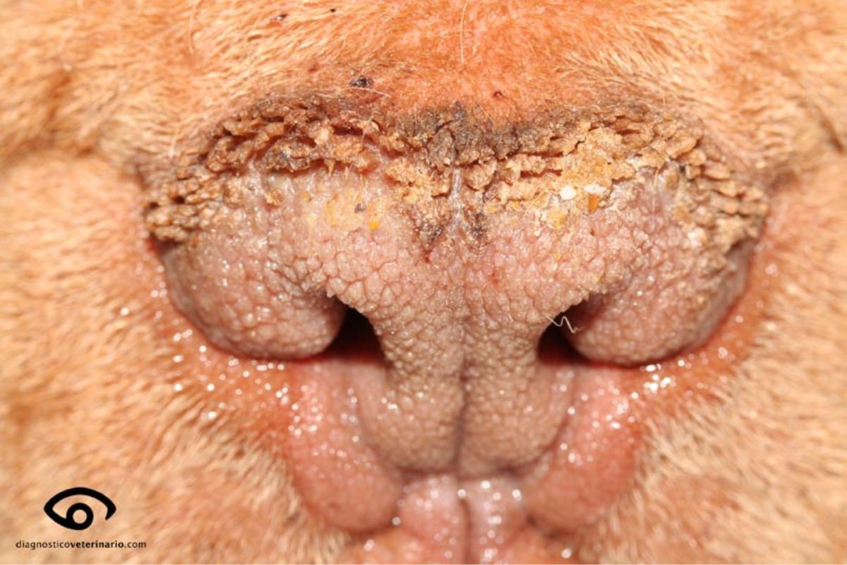 Cabe mencionar, que es habitual que estas lesiones aparezcan de forma simultánea en la nariz y las almohadillas plantares, denominándose en este caso hiperqueratosis nasodigital.