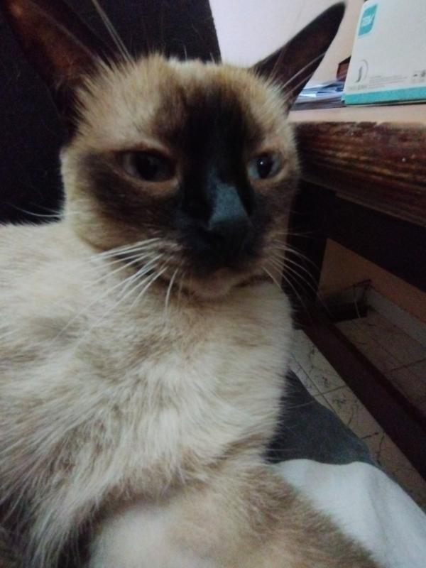 Hola, mi gata siamesa de 10 años, que no sale a la calle, si al balcón, dónde toma sol y mira a los gatos abajo, desde hace unos años, tiene como falta de pelos alrededor de sus ojos, los tiene limpios, no lagrimean, le unté una pomada oftalmica que indicó un veterinario y no mejoró, a veces le sale un pelito más largo que los de esa zona. No sé la causa. Su alimentación fundamental ha sido pienso seco, últimamente no lo quiere, solo pescado o carne cruda, no cocinada. Saludos. Anexo foto.
