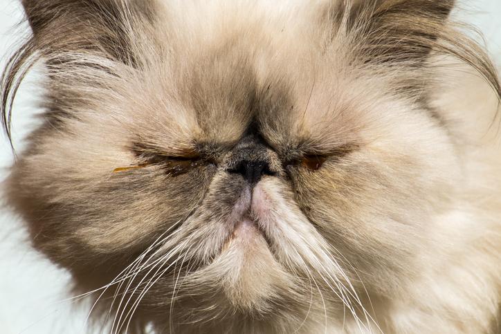 Un constante lagrimeo en uno o los dos ojos nos puede alertar de la presencia de una enfermedad ocular en nuestro felino. Este lagrimeo puede deberse a algún cuerpo extraño pero, si es continuo, lo que se conoce con el nombre de epífora, podría indicarnos una obstrucción en el conducto nasolacrimal. Por este conducto el exceso de lágrimas se desvía hacia la nariz, sin embargo, al obstruirse las lágrimas salen por los ojos. Este proceso puede ser temporal, por alguna infección o inflamación, o permanente, normalmente de nacimiento. Es más habitual en razas braquicefálicas como los persas. Debemos consultar con nuestro veterinario, ya que el tratamiento va a depender de la causa.