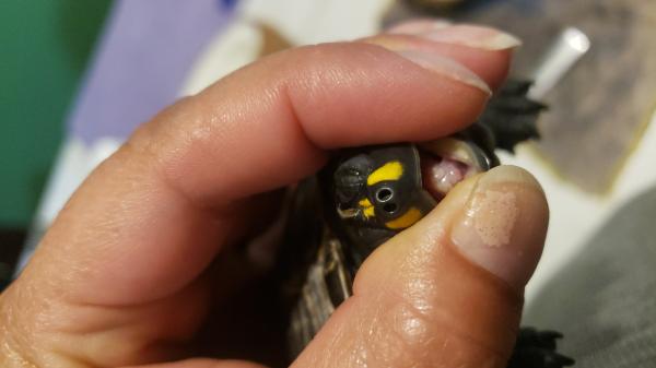 Me encontré afuera de mi casa esta tortuga pero no quiere comer y tiene unas cositas raras en los costados de su boca no sé si es eso o q es