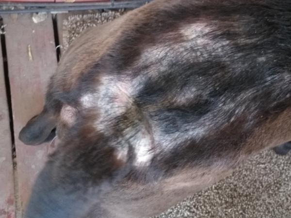 Tengo unas preguntas que es como una resequedad en la piel de mi perrita como muy gruesa y se está quedando pelona de esas partes .