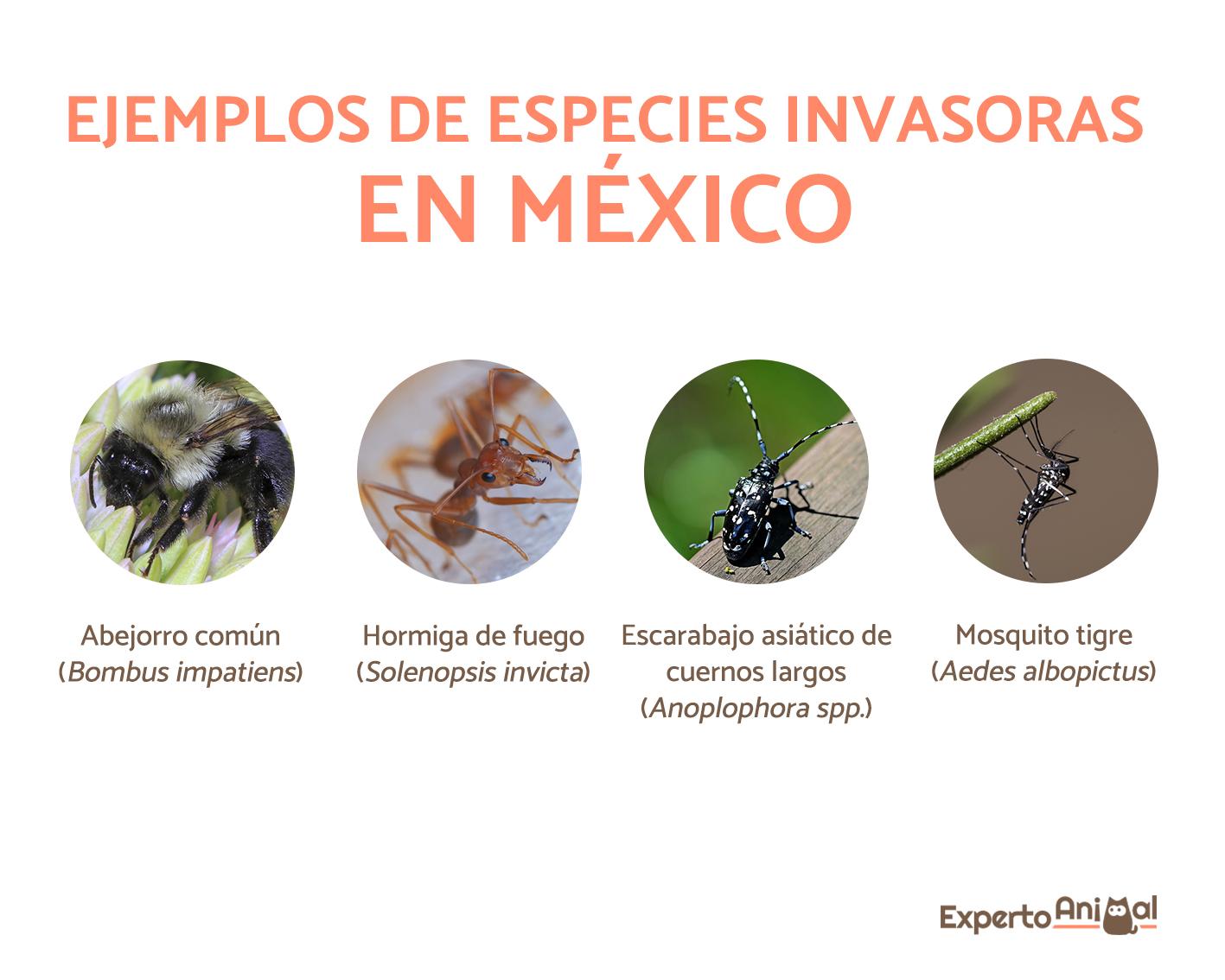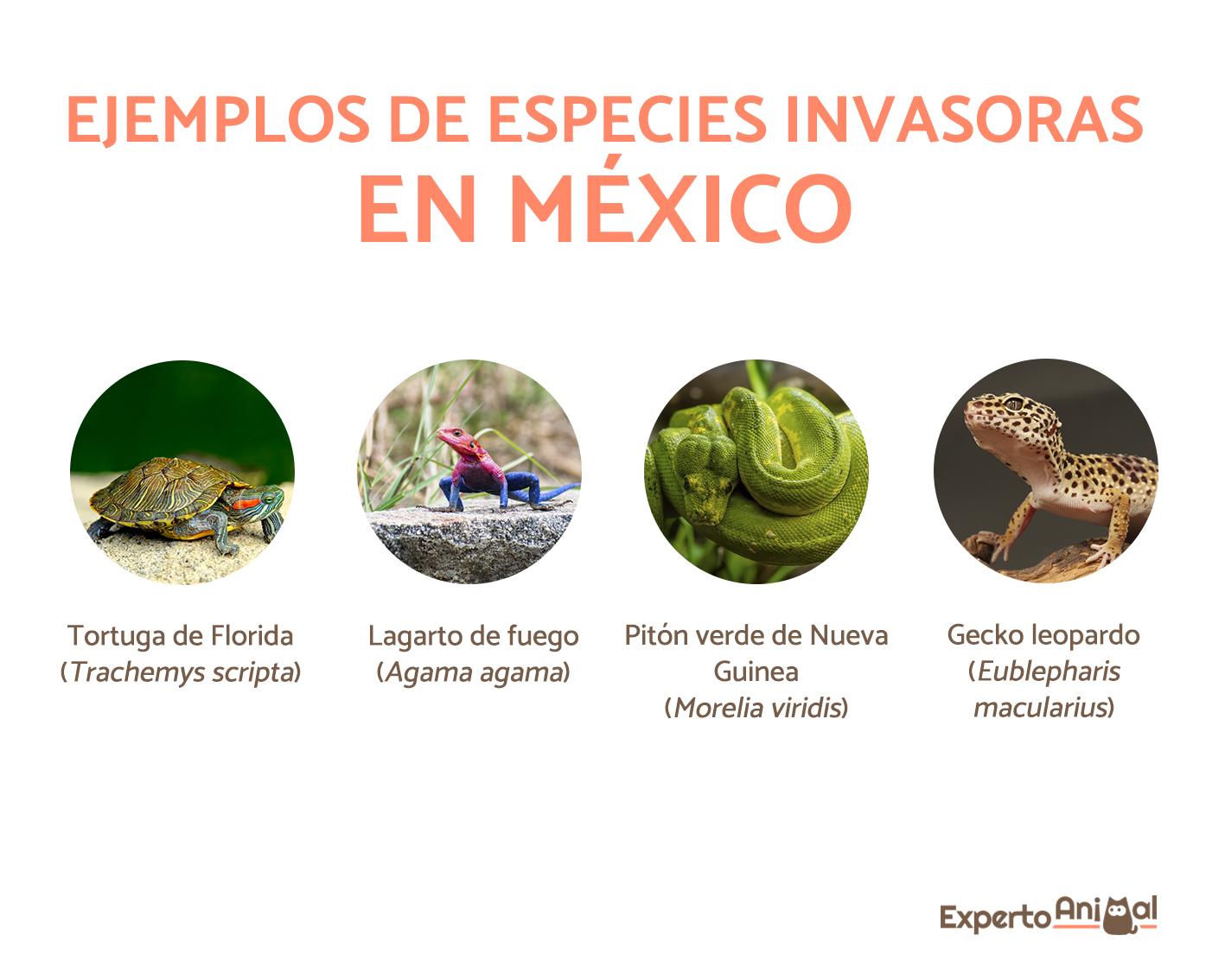Las especies invasoras en México son aquellas que no son nativas pero sí capaces de establecerse en ecosistemas naturales, amenazando a la diversidad biológica nativa, la economía o la salud pública. Muchas de ellas han sido introducidas de manera accidental, pero otras se han soltado para su aprovechamiento cinegético o bien porque eran mascotas no deseadas.