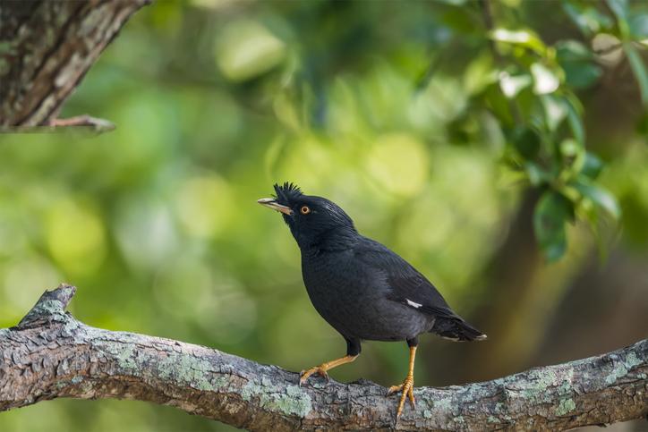 El miná crestado es un ave de la familia Sturnidae que procede de Asia. Su origen en México es la liberación o fuga de animales que se mantienen como mascotas.