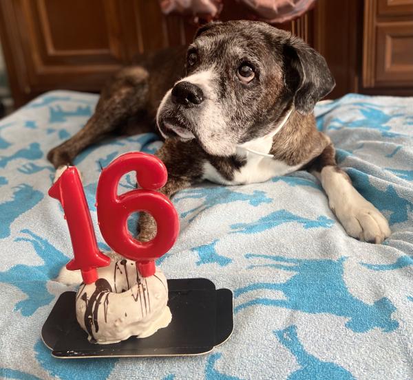 Mi bóxer Lluna cumplió el día 24, 16 añitos!!Ahi os dejo una foto para que veáis lo bonita que está!