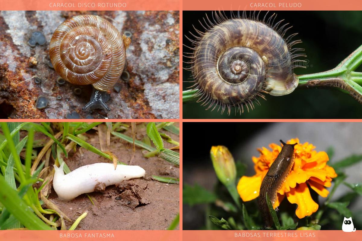 - En este grupo se ubican: los caracoles terrestres, las babosas terrestres y algunas especies que viven en agua salobre.