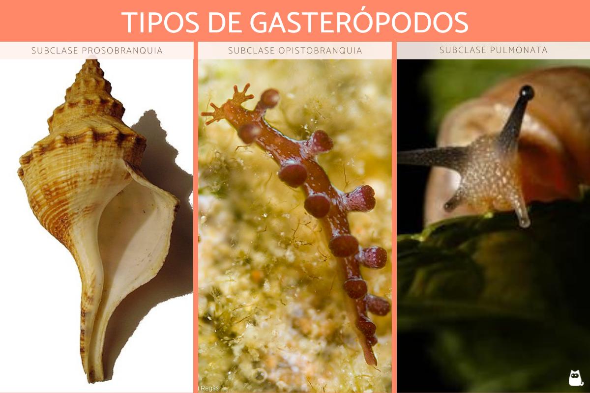 En este sentido, existe una clasificación general del grupo, eventualmente considerada como informal, pero que sigue siendo utilizada de manera común, y establece básicamente tres tipos (subclases) de gasterópodos, los cuales son los siguientes.