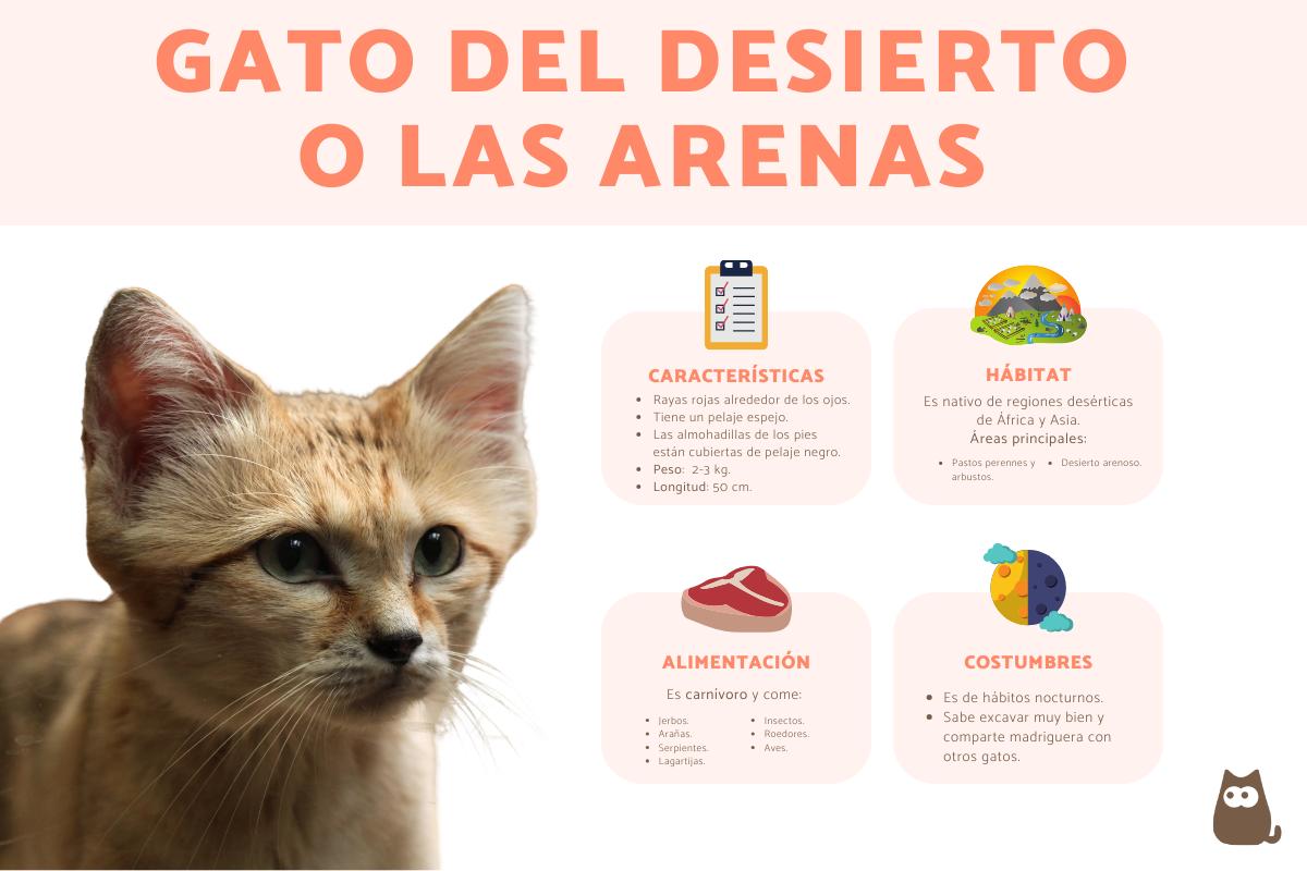 El gato del desierto o gato de las arenas presenta las siguientes características: