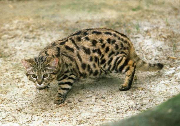 - A pesar de que su nombre común sugiere que las patas de este felino son negras, en realidad, el color negro se encuentra en la planta. Las patas en sí tienen las manchas distintivas de la especie, de manera que no son completamente negras. Por tanto, el nombre deriva de la apariencia de las almohadillas de sus patas, que son oscuras. Al caminar digitígrado, es decir, apoyando solo los dedos en el suelo, es posible ver este color negro en las plantas.