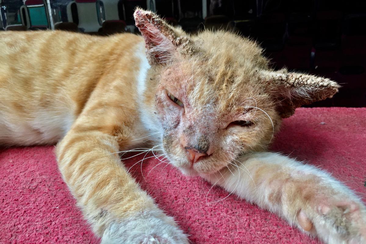 cordial saludo. mi gato tiene aproximadamente dos meses de edad tiene hongos en diferentes partes del cuerpo siendo el mas notorio uno sobre su cabeza oreja cuello le estoy suministrando ketoconazol 200mg via oral y tambien hago un unguento con la misma pasta y se la unto pero noto que el area del hongo aumenta. quisiera que me ayudaran y me recomendaran algo efectivo para curarlo. previamente lo lleve al veterinario quien le receto lo mencionado... anexo fotografia
