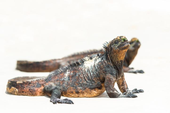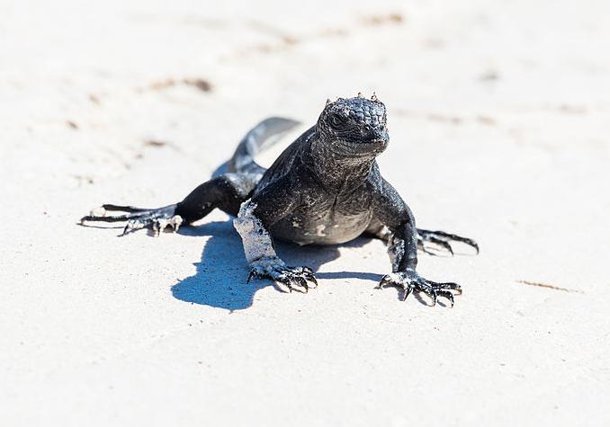 La iguana marina es uno de los vertebrados más llamativos del archipiélago, y no suele ser tan esquiva como su pariente la iguana terrestre (Conolophus subcristatus), la cual también es endémica de las islas Galápagos. El eficiente desarrollo morfológico de Amblyrhynchus cristatus le permite tener acceso a los diversos espacios en los que acostumbra a estar dentro del hábitat y, además, a su distintiva manera de obtener el alimento.