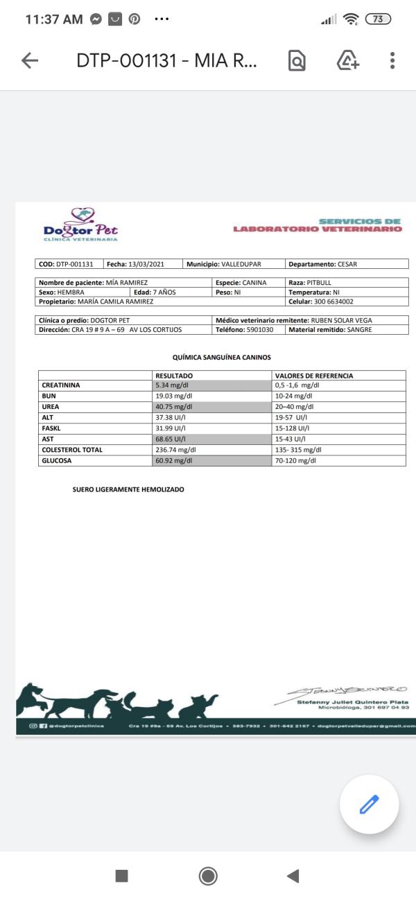 Hola. Hicieron exámenes de sangre y orina a mi perra, porque estaba presentando un moco en la orina, los resultados de orina arrojaron