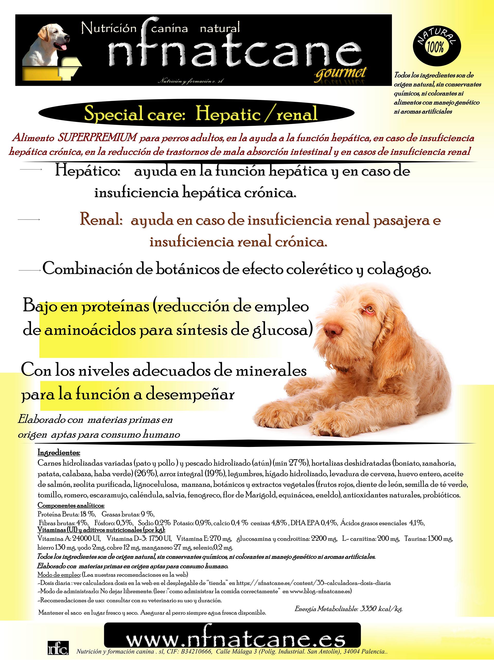 Para ello, podemos optar por una dieta casera diseñada por un/a veterinario/a especializado/a en nutrición o escoger un pienso formulado específicamente para favorecer la función hepática, como el pienso Special Care Hepatic de NFNatcane. Este pienso está creado con ingredientes 100 % naturales y escogidos para beneficiar el hígado. De esta forma, cuenta con un porcentaje de proteína inferior al habitual, puesto que, cuando ocurre una insuficiencia hepática o renal, se debe controlar la proteína que se ingiere. Así mismo, es un pienso bajo en sodio, calcio y fósforo, minerales que también deben reducirse en caso de fallo hepático, y, por el contrario, es alto en potasio. Por último, destaca su aporte de probióticos y prebióticos para favorecer el sistema digestivo, así como condroprotectores.