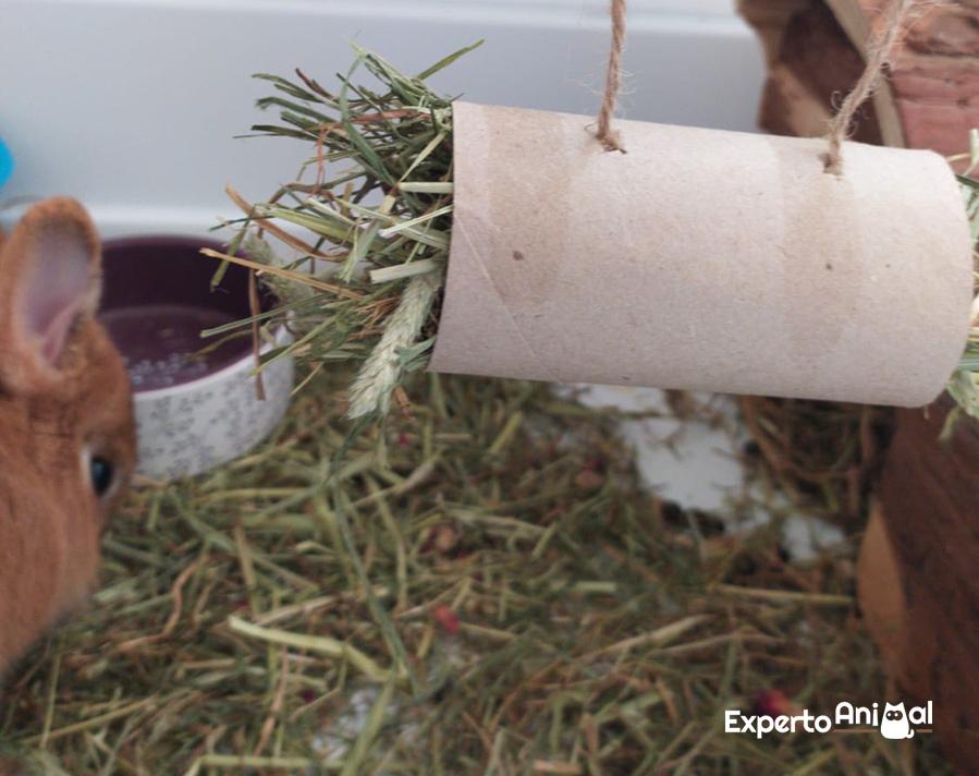 - Por último, cuelga el juguete en una zona accesible para tu conejo.