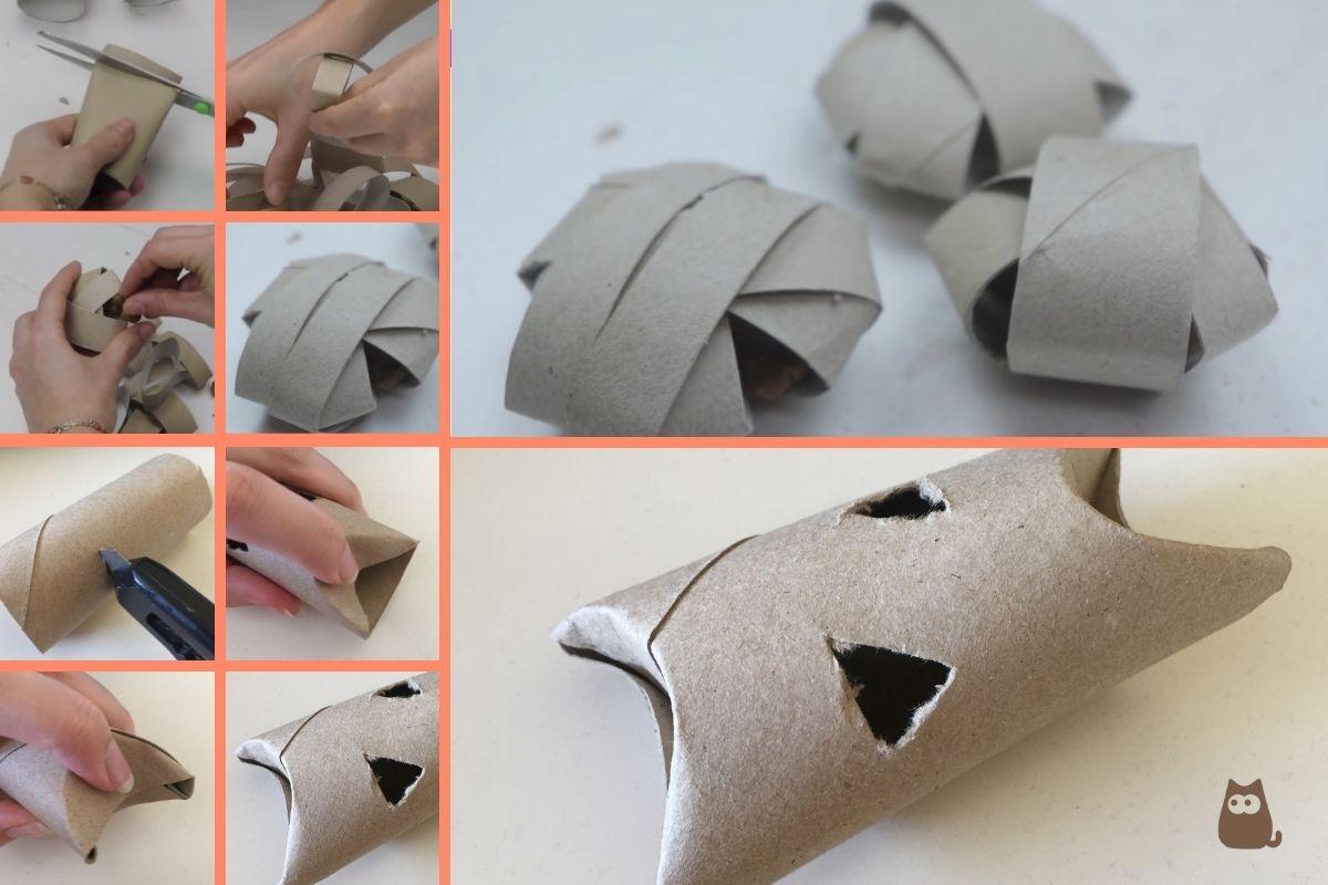 Estos rollos de cartón te ofrecen varias posibilidades, pero destacaremos dos formas sencillas de elaborar un juguete para introducir golosinas en su interior.