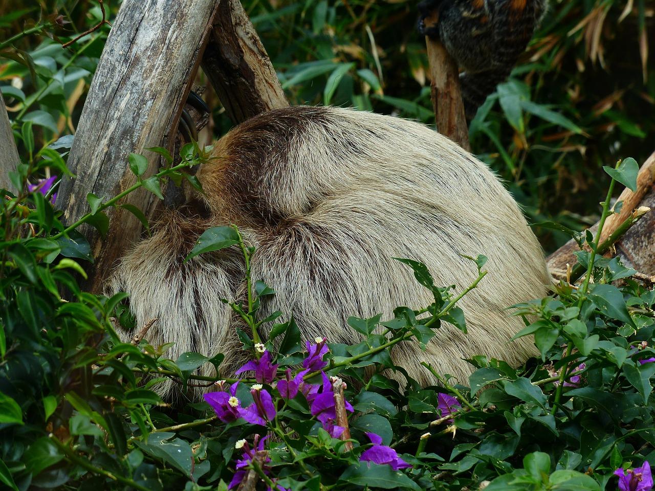Este animal únicamente baja del árbol una vez a la semana para realizar sus necesidades fisiológicas, algo que técnicamente podría hacer subido a las ramas, no obstante, el oso perezoso prefiere cavar un hoyo en la base del árbol, depositar allí sus heces y posteriormente enterrarlas, de esta manera, sus deposiciones actúan como abono y en cierto modo le devuelven al árbol parte de los nutrientes que el oso ha ingerido.