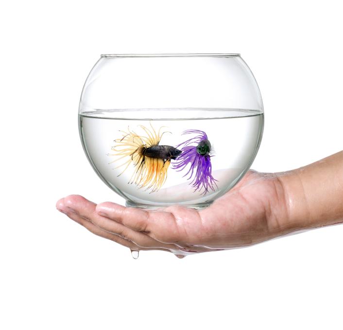 Primero pon a la hembra en el recipiente que has elaborado o en una de las dos partes de la pecera, luego al macho y finalmente tapa todo el acuario con un vidrio, plástico etc.