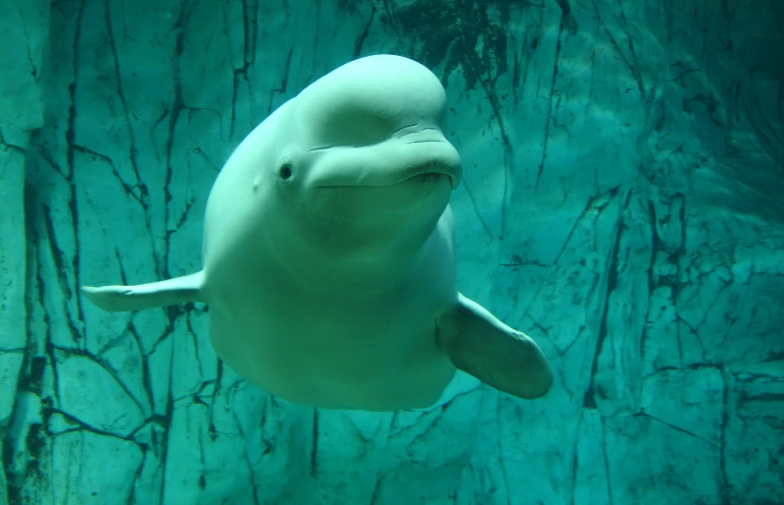 La Beluga es un precioso cetáceo de considerables dimensiones. Los machos adultos miden entre 3,4 y 5 metros, con un peso de 800 a 1500 kg. Las hembras adultas miden entre 3,3 y 4 metros. Ellas pesan de 550 a 800 kg.