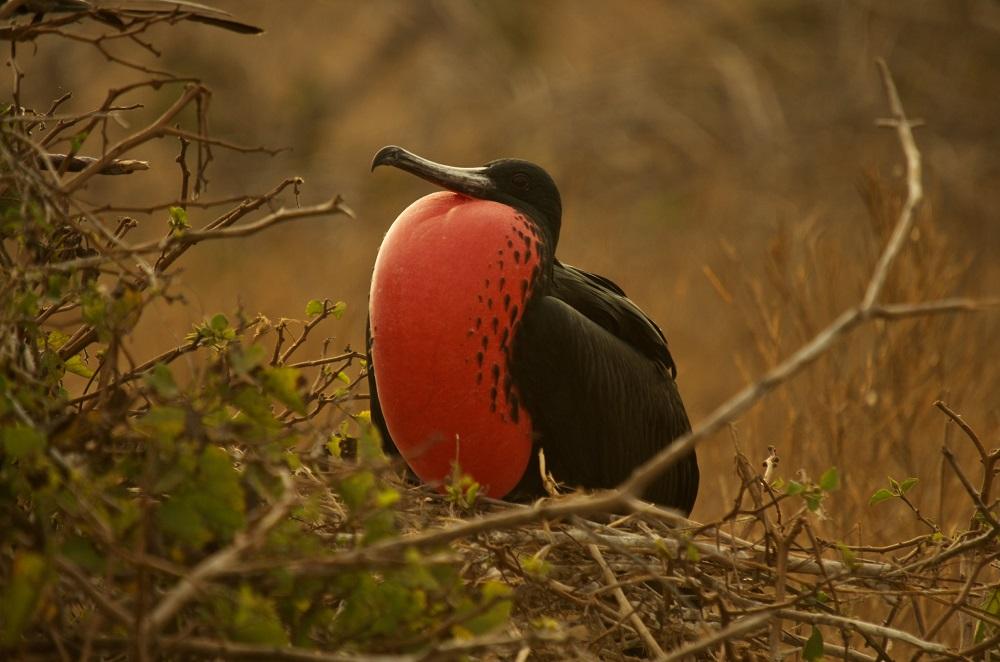 La fragata real, Fregata magnificens, se trata de un gran pájaro marino que puebla la zona caribeña mexicana. Mide 1 metro de longitud y 2,20 m de envergadura. Se alimenta de peces y otras aves marinas.