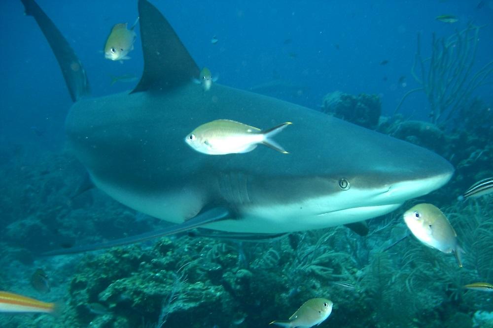 El tiburón toro, Carcharhinus leucas, se trata de un temible predador en la cumbre de la cadena trófica de aquellas aguas caribeñas. Existen otras muchas especies de escualos, pero el tiburón toro es el más representativo entre ellos. Pueden medir hasta 3,5 m y pesar unos 250 kg.