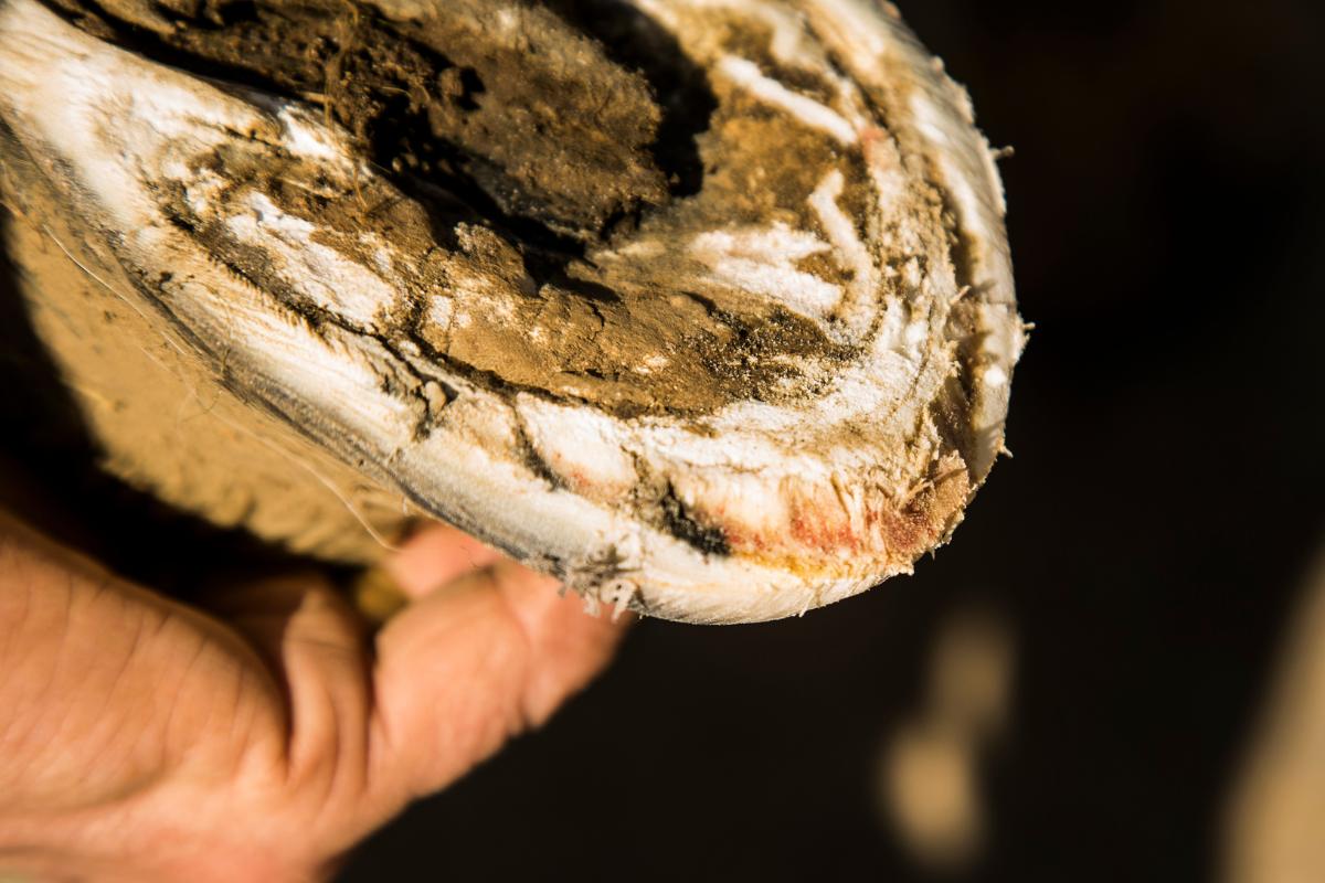 - Descarga de pus: en casos graves de laminitis, se puede observar una descarga de pus a través de la ranilla (parte inferior del casco).