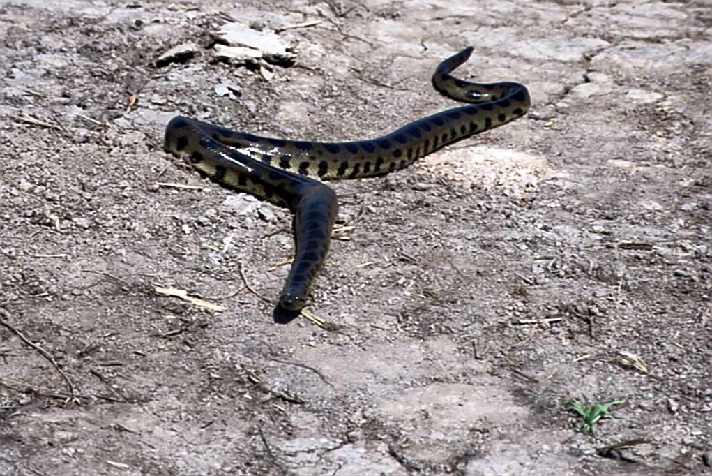 La anaconda verde, Eunectes murinus, es la mayor de las 4 anacondas que viven en el continente sudamericano. Las hembras son mucho más grandes (más del doble) que los machos, en un ejemplo muy claro de dimorfismo sexual.